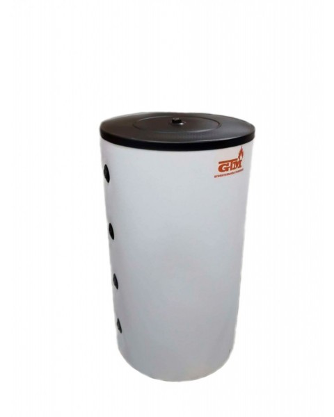 Модель GTM 1200 выполнена в напольном исполнении, рассчитана на вертикальную установку. В конструкции отсутствует внутренний теплообменник, что упрощает устройство и снижает риск поломок. За счёт качественной теплоизоляции минимизируются теплопотери при хранении теплоносителя. Отводы, расположенные под углом 90°, упрощают разводку систем и повышают удобство монтажа. Основное назначение — аккумулирование тепла и сглаживание пиков нагрузки в действующих отопительных схемах.