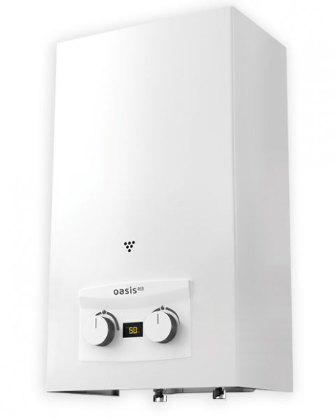 Oasis PRO WM10 работает на природном газе и оснащён открытой камерой сгорания. Розжиг горелки осуществляется автоматически при открытии крана горячей воды, благодаря встроенному пьезорозжигу, работающему от батареек. Это делает устройство полностью энергонезависимым от электросети.