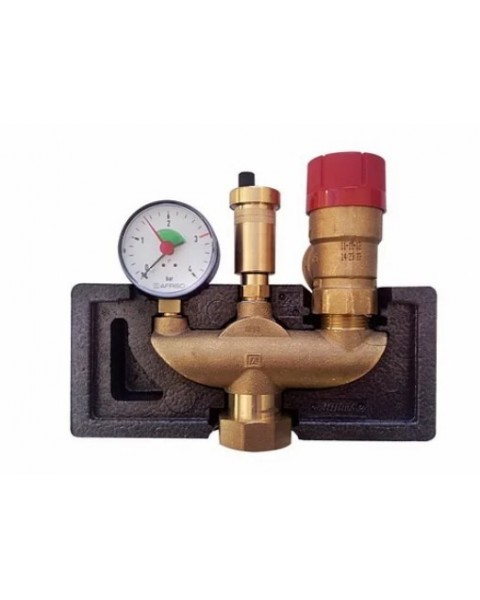 Группа безопасности котла Afriso KSG mini 77351 (с изоляцией GW G1" 2,5 бар 1/2" х 3/4", маномерт 0 - 4 бар)