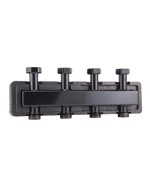Распределительный коллектор разрабатывался специально для насосных групп . Группы могут монтироваться как сверху коллектора, так и снизу. Корпус коллектора защищен теплоизоляцией. В комплекте так же идут крепежные кронштейны, поворотные накидные гайки и фитинги для подключения насосных групп.