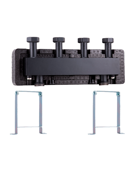 Распределительный коллектор P74040002 разрабатывался специально для компактных насосных групп Barberi DN25. Корпус коллектора защищен теплоизоляцией. В комплекте так же идут крепежные кронштейны и поворотные накидные гайки.