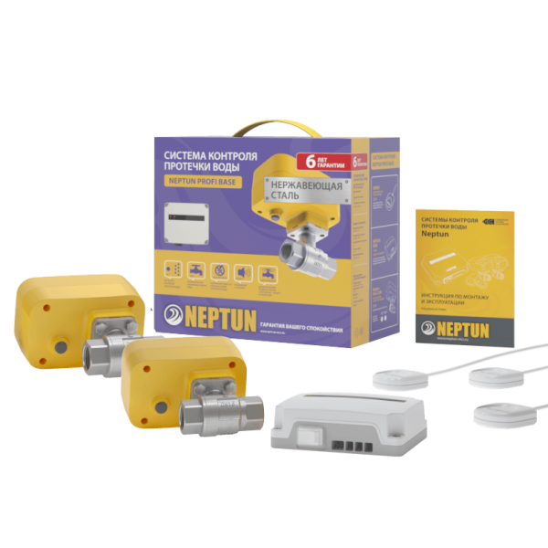 Система защиты от протечек диаметром ¾″ из серии Profi Base предназначена для своевременной остановки подачи воды при аварийных ситуациях в трубопроводе жилого либо коммерческого здания. Когда один из подключённых датчиков фиксирует появление воды в охраняемой зоне, блок управления активирует электропривод крана и блокирует подачу воды. Одновременно срабатывает звуковой и световой сигнал — это помогает предотвратить затопление и уменьшить возможный ущерб.
