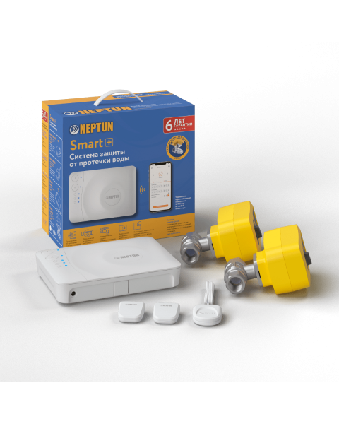 Умная система защиты от протечки воды — надежный комплекс, который мгновенно реагирует на любые признаки утечки и самостоятельно закрывает подачу воды, не требуя постоянного вмешательства. Центральный контроллер управляет шаровыми кранами с электроприводом и обменивается данными с датчиками, передавая информацию на смартфон через облачное приложение.
