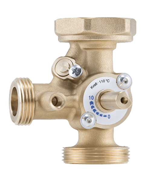 Трехходовой смесительный клапан предназначен для смешения холодной воды обратной линии и горячей воды подающей.
