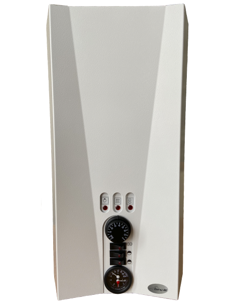 • Механическое управление, которому не страшны перепады напряжения, представляет собой блок управления с возможностью выбора мощности и регулирования температуры теплоносителя, а так же аварийный термостат предохраняющий котел от перегрева.