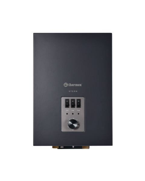 Электрический котёл Stern 9 — это надёжное устройство для настенного монтажа, рассчитанное на отопление закрытых систем с водяным теплоносителем. Модель работает от сети 220 В или 380 В и предлагает три режима мощности: 3 кВт, 6 кВт и 9 кВт. Направлена на обогрев помещений площадью до 90 м². Предусмотрен диапазон температур в радиаторных системах и в системах «тёплый пол» от 30 до 85 °C. Устройство снабжено защитой от превышения давления (до 0,3 МПа) и работает при минимальном давлении 0,05 МПа. Управление механическое, класс защиты корпуса — IPX1. Вес оборудования составляет около 7,1 кг, габариты: высота 450 мм, ширина 280 мм, глубина 185 мм.