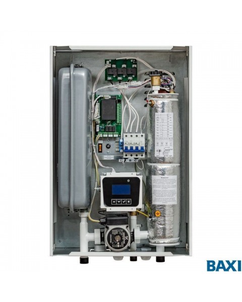 Электрокотел Baxi Ampera 9 представляет собой умную миникотельную, так как в котле уже установлен насос, расширительный бак и группа безопасности. Блок панели управления предусматривает работу с каскадом котлов, бойлером ГВС и несколькими контурами, в том числе с контуром «теплые полы» со смесительным трехходовым клапаном. В модели имеется погодозависимое управление. Представлен в диапазоне мощности от 6 до 30 кВт.