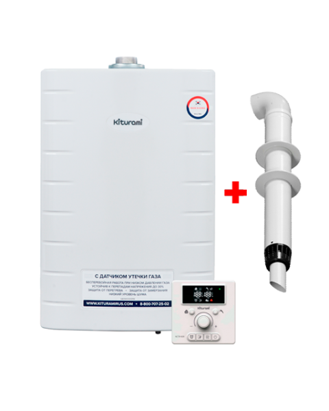 Современные двухконтурные настенные газовые котлы Kiturami World Alpha 24 предназначены для отопления и водоснабжения небольших домов и квартир. Котлы относятся к категории “котлы с закрытой камерой сгорания” или как их еще называют “турбированные газовые котлы”. Это значит, что выброс продуктов сгорания (дыма и пара) происходит принудительно, встроенным в котел дымососом (турбиной), через коаксиальные дымоходы специальной конструкции 60/100 мм. или с организацией разделенного дымохода 80/80. Котлы Kiturami World Alpha 24 отличаются компактностью и простотой установки. Модель Kiturami World Alpha 24 имеет раздельные теплообменники, двухъярусный первичный теплообменник на отопление и пластинчатый теплообменник из нержавеющей стали для приготовления горячей воды (ГВС) . Для пользователя, несомненное удобство представляет выносной датчик с дисплеем для простого и понятного управления котлом.