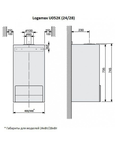 | Диаметр дымохода, мм | 60/100 |