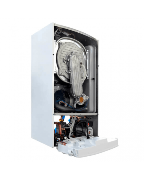 Котел разработан как компактное настенное решение, рассчитанное на установку в помещениях с ограниченным пространством. Встроенный трехходовой клапан упрощает интеграцию дополнительного бойлера, что делает систему гибкой и удобной для расширения. Основной акцент сделан на стабильное отопление с минимальными теплопотерями и рациональным использованием топлива.