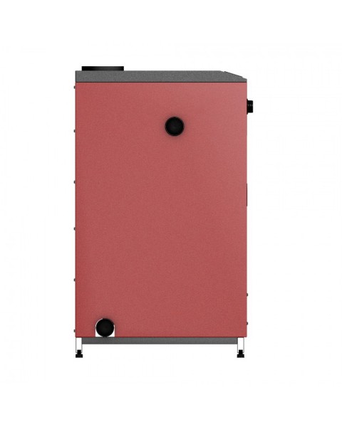 В верхней части находится газоотводящий патрубок для удаления продуктов сгорания из топки.