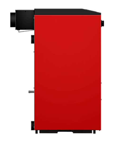 В верхней части находится газоотводящий патрубок для удаления продуктов сгорания из топки.