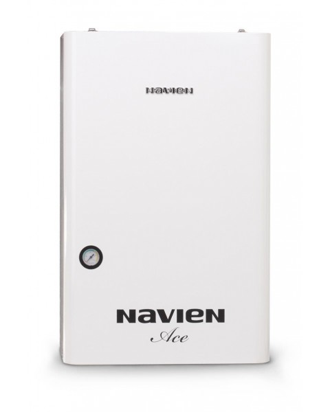 Настенный газовый котёл Navien Ace Atmo 13AN (Navien Deluxe - 13A White) выполнен по схеме с открытой камерой сгорания. Это позволяет использовать его в частных и многоквартирных домах, где имеется традиционный дымоход, выходящий на крышу. Следует отметить, что использование открытой камеры сгорания снижает уровень шума. Температура в отопительном контуре регулируется от +40 до +80 градусов, допустимое давление составляет 3 атмосферы. Температура горячей воды регулируется от +30 до +60 градусов. Требуемые параметры выставляются на поставляемой в комплекте панели управления, не требуя приобретения комнатного термостата. Котёл наделён всем необходимым для подключения к отопительному контуру – на борту присутствуют циркуляционный насос, расширительный бак на 8 литров, предохранительный клапан и автоматический спускник воздуха. Безопасность пользователей и оборудования обеспечивается системой ионизационного контроля пламени и системой защиты от замерзания. Также в конструкции предусмотрена защита от перегрева. Для контроля температуры и давления в агрегате имеются термометр и манометр. Котёл отличается устойчивой работой при колебаниях давления газа и напряжения в питающей электрической сети. При необходимости, его можно перевести на работу со сжиженным газом путём простой перенастройки.