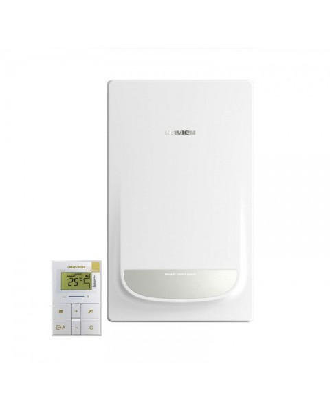 - Выносной пульт управления с ЖК-дисплеем, встроенным датчиком температуры и режимом таймера в комплекте с котлом;