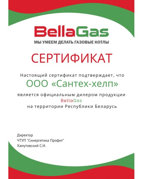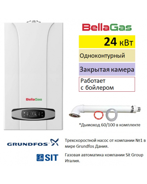BellaGas Best 24 газовый настенный котёл, мощность котла 24 кВт. Закрытая камера сгорания (турбированный), подключение дымохода 60/100 или 80/80 мм. Двухконтурный для отопления и приготовления горячей воды. Котёл сделан в Республике Беларусь. Первичный теплообменник из меди, теплообменник для гвс из пищевой нержавеющей стали.