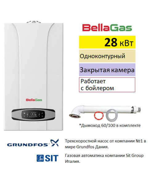 BellaGas Best 28 газовый настенный котёл, мощность котла 28 кВт. Закрытая камера сгорания (турбированный), подключение дымохода 60/100 или 80/80 мм. Двухконтурный для отопления и приготовления горячей воды. Котёл сделан в Республике Беларусь. Первичный теплообменник из меди, теплообменник для гвс из пищевой нержавеющей стали.