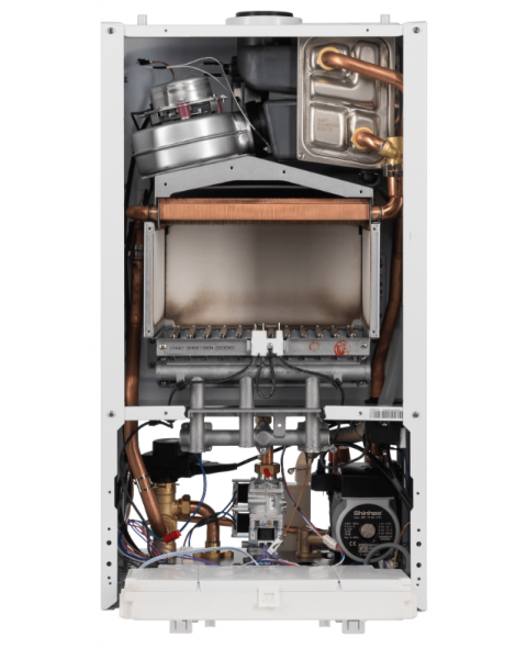 Котлы имеют высокоэффективный основной теплообменник изготовленный из бескислородной меди по технологии «Oxygen-Free» отличающийся высокой надежностью, конденсационный экономайзер увеличивающий термическую эффективность и многоступенчатую горелку, которая способна работать в широком диапазоне мощности.