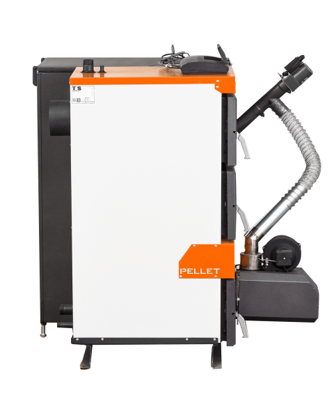Котел поставляется в сборе, с бункером и пеллетной горелкой, автоматика, вентилятор.