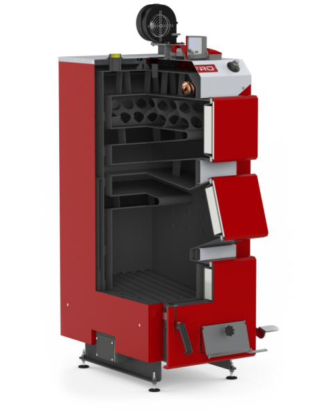 Теплообменник котла изготовлен из сертифицированной котельной стали толщиной 6 мм. Корпус изолирован минеральной ватой для снижения потерь тепла и безопасной эксплуатации котла. Модель оснащена механизмом очистки колосниковой решетки, что также значительно упрощает процесс обслуживания котла. Гарантийный срок 4 года. Срок эксплуатации более 15 лет.
