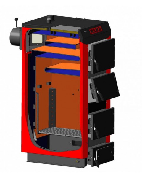Твердотопливный котел Маяк КТР-25 Eco Manual Uni предназначен для отопления жилых и хозяйственных помещений площадью до 250 м.кв., оборудованных системой водяного отопления с естественной или принудительной циркуляцией теплоносителя. Котлы предназначены для работы на различных видах твердого топлива антраците, каменном и буром угле, дровах, брикетах. Теплообменник выполнен из высокопрочной стали, толщина которой составляет 6 мм. Увеличенный объем топки и чугунные колосники позволяют данному котлу работать с максимальной производительностью.