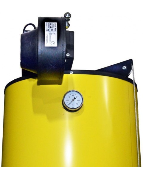 Чтобы улучшить качество горения топлива в верхней части котла расположен экономайзер в виде камеры подогрева воздуха. Подогретый воздух посредством универсального распределителя на конце телескопической трубы подается непосредственно в область горения. При сгорании верхних слоев топлива распределитель будет опускаться под действием силы тяжести. Тяга в котле регулируется посредством электронного пульта управления с вентилятором.