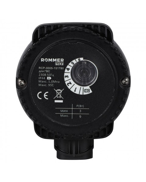 Насосы ROMMER работают с переменной частотой вращения. Высокая энергоэффективность до 80% достигается благодаря ротору на постоянных магнитах. Скорость насоса регулируется в соответствии с выбранным одним из семи режимом работы насоса, с мощностью на валу от 3 Вт до 9 Вт. В режиме частотного регулирования ECO (горит зеленый индикатор) насос автоматически подстраивается под текущий характеристики системы. Насосы имеют исполнение «с мокрым ротором» это значит, что детали насоса охлаждаются перекачиваемой жидкостью. Магнитная связь между ротором и статором исключает из конструкции трущиеся детали (подпишники), что значительно увеличивает ресурс насоса. Корпус насоса из нержавеющей стали крепится к блоку статора с блоком управления с помощью накидной гайки. В качестве рабочей среды необходимо использовать очищенную воду, не содержащую нерастворимые механические примеси.