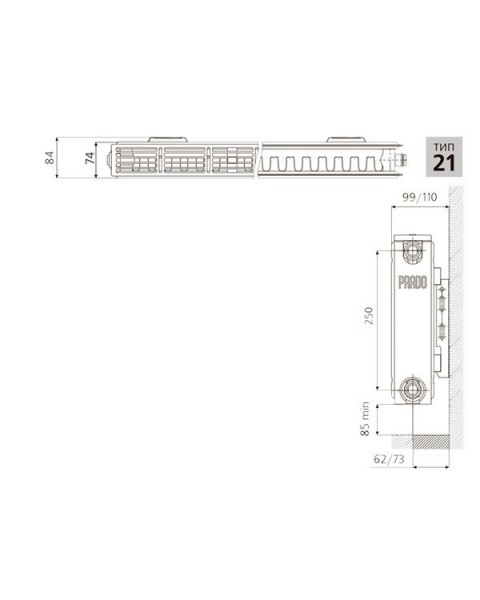 | Модель | Радиатор стальной панельный Prado Classic тип 21 |