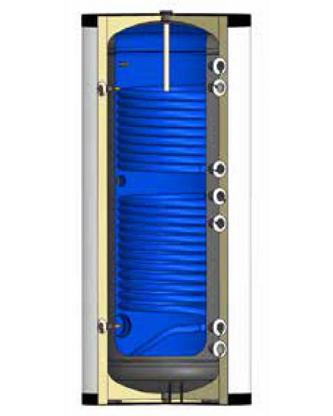 Бойлер косвенного нагрева Эван WBC HT-300 с двумя змеевиками предназначен для организации высокоэффективного горячего водоснабжения. Магниевый анод предотвращает коррозию эмаллированного корпуса устройства. Водонагреватели WBС поддерживают возможность подключения линии рециркуляции. Производитель предлагает водонагреватели, которые оснащаются верхним и нижним теплообменником, и имеют низкие характеристики теплопотерь. Горячая вода готовится за счет прохождения теплоносителя от котла отопления. Внешняя оболочка: WBС-HT — покрытие вспененный полиэтилен.