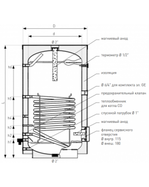 Спиральный змеевик с большой поверхностью, расположенный в нижней части бака, гарантирует оптимальное использование емкости резервуара. Подключенный к любому котлу ЦО или камину, нагревает как можно больше воды в любой момент времени. Теплообменник Tower SGW(S) также может работать от электрического нагревателя, установленного с электрическим комплектом GE, или от дополнительных нагревателей, установленных на фланце в смотровом отверстии.