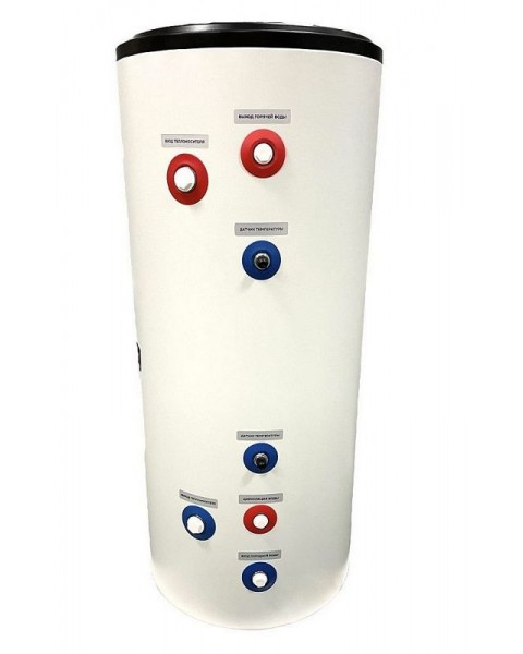 Две гильзы для температурных датчиков, позволяющие подключать два источника нагрева (газовый и твердотопливный, электрический и твердотопливный и т.д.)