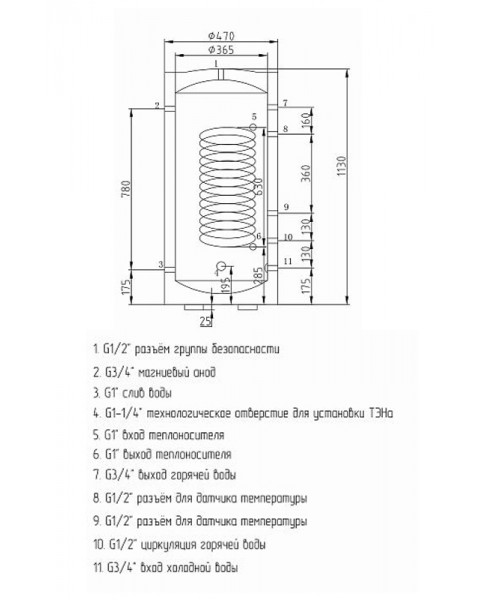 Встроенный магниевый анод является дополнительной защитой бака от коррозии.