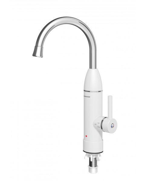 Проточный водонагреватель Edisson Mini 3000 рассчитан на подключение к сети 220-230 В и мощность порядка 3 кВт. Он обеспечивает производительность примерно 1,2-1,7 л/мин в зависимости от напора и настроек. Устройство разработано с нижней водяной подводкой и резьбой соединения ½″, предназначено для настенного монтажа над раковиной или мойкой. Корпус белого цвета, глубина около 200–205 мм, ширина — около 95 мм, высота примерно 360 мм, вес порядка 1–1,5 кг. Предусмотрена защита от перегрева и минимальное давление для работы.